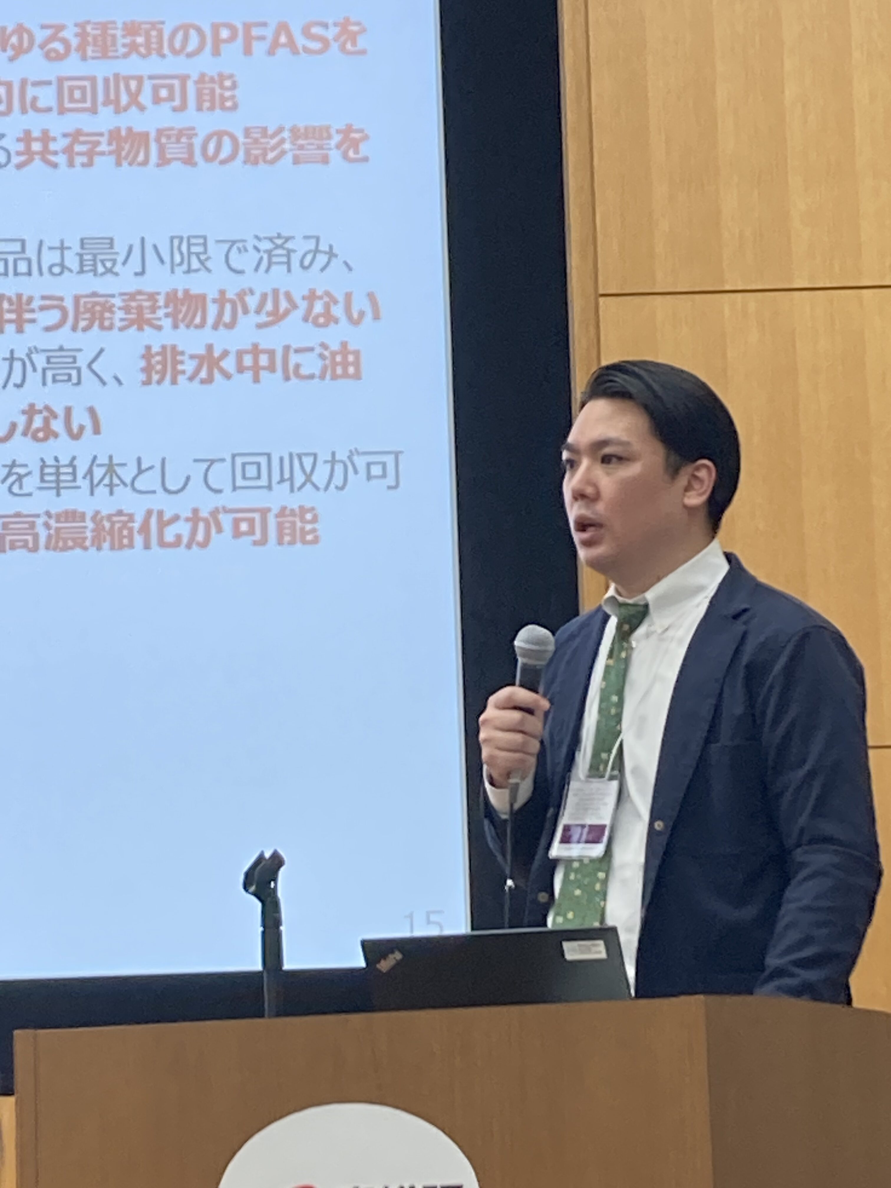 発表テーマは、「革新的な溶媒抽出『エマルションフロー』を用いたPFAS濃縮回収技術の紹介」。エマルションフロー技術を応用した当社のPFAS濃縮・分離ソリューションについて、その適用性および事業開発の進捗をご紹介いたします。